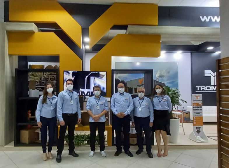 A equipe que representou a Trombini na EXPOACIAF 2021 reuniu colaboradores da Qualidade, Vendas, Gerência e a assistência da Assessoria de Mercado.